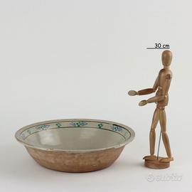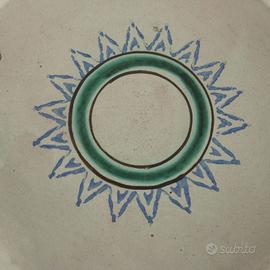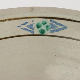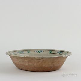Bacile in maiolica d'uso comune decorato con semplici ornati geometrici.