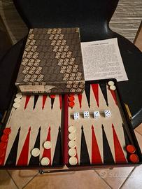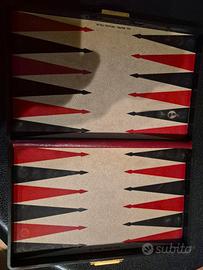 Backgammon dal negro da viaggio anni 80 custodia rivestita in pelle come nuova le pedine sono magnetiche la pelle del tavolo da gioco a qualche piccola imperfezione essendo datato si vede anche nella foto ingrandita ma per l'età è accettabile completo di pedine e 4 dadi le misure sono nelle foto trattasi di un oggetto da collezione.