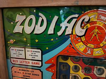 Vendo backglass e piano di gioco di bingo Zodiac prodotto dalla Bally nel 1966, come visibile nelle foto sia il vetro che il pianale sono buone condizioni, eventualmente disponibile anche i componenti elettromeccanici. Vista la fragilita del backglass sarebbd preferibile il ritiro.