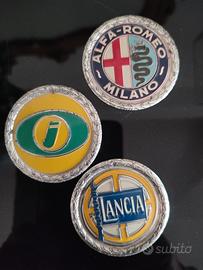 badge, loghi, fregi, rari rilievo ghirlanda alloro, materiale alluminio, di auto d'epoca 1970.