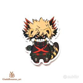 Bellissimo portachiavi e/o adesivo con il personaggio di Bakugo in versione panda rosso