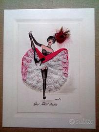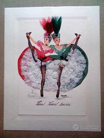Anni '50 tre stampe 10,5 x 15,0 "Paris French Cancan" dell' artista Janicotte raffiguranti ballerine con applicazione di seta, pizzi e piume. Le stampe sono incollate su passsepartout 15 x 20 da Pili di Parigi pronte per essere incorniciate. Tenute perfettamente e di grande effetto. Possibile ritiro a Milano piazzale Dateo.