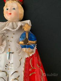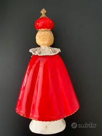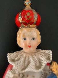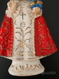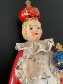 Statuetta vintage del Bambino Gesù di Praga, anteriore agli anni 60, in delicata porcellana giapponese dipinta a mano.