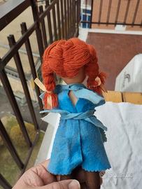 Vendo bambola anni 80 " Anna dai capelli rossi " marcata " Furga n° 344 " completa dei suoi accessori, collo, braccia e gambe snodabili e integri . Segni d'epoca sui vestiti in panno lenci . No scatola