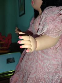 Bambola antica alta cm 62. Il vestito è in parte scucito . Apre e chiude gli occhi, il suono interno funziona qualche volta. Il vestito dietro è imbastito ancora dalla mia mamma. É bella... da sistemare.... Spedizione a carico cliente