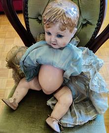 Bambola anni 20 in ceramica bisquit, l= 52 cm.