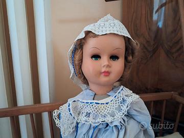Vecchia bambola vintage completa di vestitino, ventrini e carrozzina.