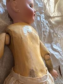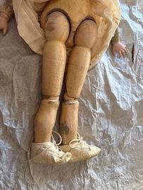 Bambola antica Schoenau & Hoffmeister del 1900 testa in bisquit , 19,5" con bocca aperta e corpo composito, Germania