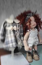 Questa bambola artigianale ha un aspetto affascinante e vintage, con uno stile che richiama il passato. Ha il viso in tessuto morbido con un'espressione dolce caratterizzata da semplici occhi ricamati e guance leggermente arrossate, che le conferiscono un aspetto delicato.
