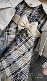 I capelli della bambola con in fibre sintetiche, sono ricci e voluminosi, di un bel colore rosso ramato, e sono adornati con una fascia in tessuto a quadri che si abbina al resto dell'abbigliamento. Indossa un vestitino scozzese in stile classico con un sottogonna in tulle,composto da una giacca in tessuto chiaro.