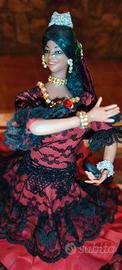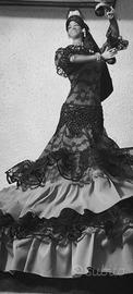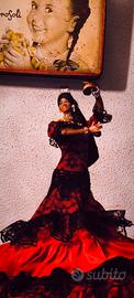 Bambola ballerina di flamenco vintage spagnola Marin Chiclana Alta Cm.35 Bellissima bambola vintage Marin Chiclana, realizzata in Spagna tra gli anni '60 e '80. La bambola ha un elegante vestito in tulle rosso con merletti e passamanerie in pizzo nero addobbata con gioielli in cristallo brillanti incastonati . È alta 35 cm, incluso il pettine per capelli. È una ballerina di gran classe con abito di pizzo e fastosi gioielli perfettamente riprodotti .