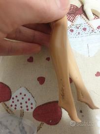 Barbie My First anno 82, viene venduta con il suo costume da bagno giallo originale e con una gonna e stivaletti che ho aggiunto io sempre del marchio Mattel. Purtroppo ha sulle sue caviglie dei piccoli buchi, ma con i stivaletti non si vede niente facendo sempre un bell display in vitrina. Il prezzo e ridotto per il suo difetto altrimenti costava molto di più, minimo il doppio si come la bambola ha tutti questi anni