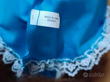 Bambola di Belle della Disney vestito azzurro. Senza scarpe, capelli crespi e da sistemare, il nastro ai capelli è stato aggiunto. No consegna a mano.