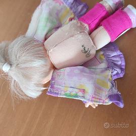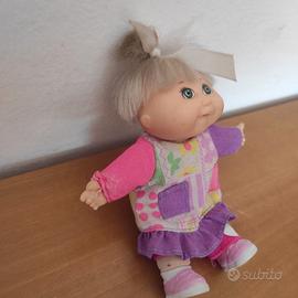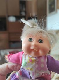 In perfette condizioni, bambolina 12 cm appartenente alla linea "Cabbage Patch Kids". Corpo di pezza, testa mani e piedi in vinile. Morbidi capelli biondo platiné. Rifinitissima nei dettagli e nell'abbigliamento, completa di paraginocchi. Consegna a mano a Bologna oppure posso spedire.