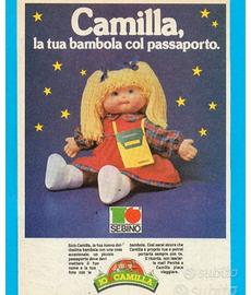 La famosa bambola "Camilla col passaporto" Sebino by Giochi Preziosi del 1983. Bellissima come nuova completa del suo abbigliamento. Grazie alle sue scarpine la bambola sta in piedi da sola. Tenuta sempre esposta in vetrinetta con altri giochi anni 80 / 90 profumata e pulita (non odora di chiuso, muffa, cantina ecc). NO DIFETTI ne su visino, ne ai capelli ne nel resto del corpo. COME NUOVA. Spedisco con 10 euro in più.