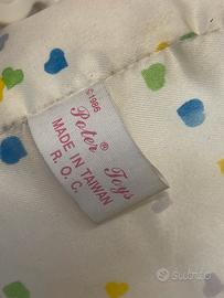 Bambola Clown Musicale a Carica Vintage prodotta da Peter Toys e risalente al 1986. È stata Prodotta a Taiwan R.O.C. (Repubblica di Cina). Bambola Clown Musicale a Carica. Girando la chiave dietro la schiena riproduce la musica e balla . La bambola ha un corpo simile al raso bianco con una stampa di cuoricini multicolori, un naso rosso, un viso dipinto e sorridente con occhi chiusi, capelli di lana rosa, e un cappello a punta e un colletto/polsini a balze in tessuto a strisce arcobaleno con finiture argentate metalliche. Il meccanismo di carica è una chiave di plastica bianca, spesso contrassegnata come "Poter Toys". Lunga circa 36 Cm
