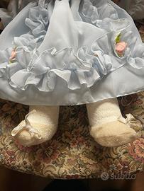 Bellissima bambola collezione stile Lenci firmata Zanini e Zamberletti. la bambola presenta: - viso in porcellana finemente modellato - corpo morbido in panno (stile Lenci) - abito originale celeste decorato con fiori e strati in tulle - dettagli curati e raffinati. La bambola è in buone condizioni generali con normali segni del tempo, sono presenti lievi macchioline/ingiallimenti sul corpo in stoffa, come spesso accade per questo tipo di materiale nel tempo. per qualsiasi informazioni scrivetemi pure!