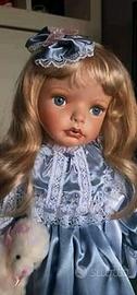Bambola d'Artista Statunitense in Porcellana Biscuit, alta 65 cm, occhi in vetro, munita di piedistallo e accessori. È numerata, firmata e certificata (B 315). Bambola NUOVA MAI esposta. Tirata fuori dalla scatola e dall'imballaggio per fare le foto.