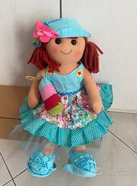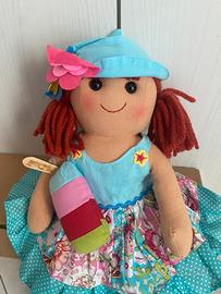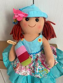 Bambola da collezione marca My Doll, soggetto estivo con gelato, altezza cm 42, materiale in tessuto, capelli in lana, articolo fuori produzione. Nuova con cartellino e scatola originale ( armapinomarr2alto)