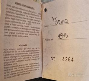 Impreziosita da un bellissimo vestito in pizzo e stoffa pregiata della linea Le Bambole di Arianna, con certificato di garanzia.