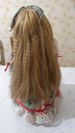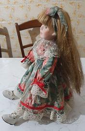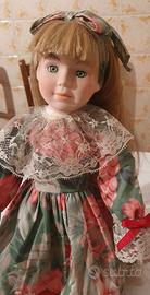 Bambola in porcellana da collezione, vintage numerata, Daniella c6584, sempre tenuta in esposizione con suo piedistallo in legno. Altezza sul piedistallo cm. 37,5c.