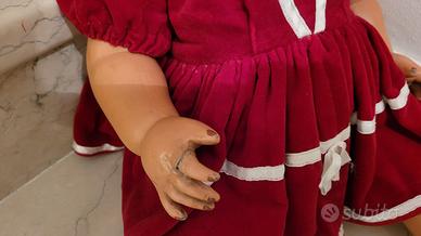 Bambola del 900 (anni 40 o, presumo, ante). 60 cm di altezza. Molto ben conservata, ha solo un dito rotto (vedi foto) a suo tempo subito aggiustato