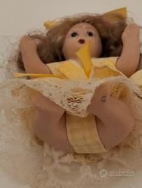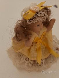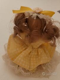 Bambola da collezione vintage in porcellana - Abito giallo e pizzo Testo dell'annuncio: Bellissima bambola vintage da collezione, ideale per appassionati o per decorare ambienti in stile shabby chic/romantico. Caratteristiche:Testa e arti in fine porcellana biscuit, dipinta a mano con espressione dolce. Dettagli abito:Vestito giallo pastello a quadretti con ampie balze in pizzo sangallo bianco e nastri in raso coordinati. Acconciatura bionda con boccoli e cappellino in pizzo. Condizioni:Ottime, come da foto. Ben conservata, senza crepe o rotture nella porcellana. Tessuti puliti. Dimensioni:[altezza in cm.8 ] Disponibile per ritiro a mano o spedizione tracciata. Contattatemi per ulteriori foto o info!
