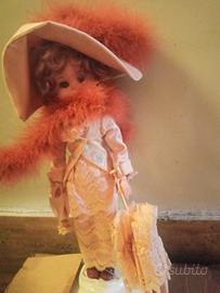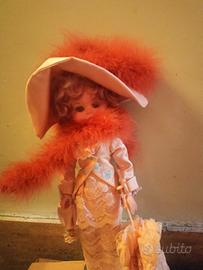 Bambola da collezionismo Furga 1870 "Mimì Bluette'. Con pedana vestito completo curato nei dettagli, ombrellino apribile in pizzo, capelli e volto puliti come nuove. Un vero gioiellino. Completa di scatola.