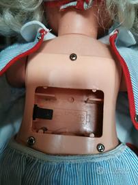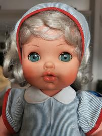 La bellissima bambola Daniela era presente nel catalogo UPIM del Natale 1969 con diverse versioni di abiti. Essa è lunga 38 cm, è in ottime condizioni tranne per una scarpetta rotta, come da foto, e per il meccanismo delle batterie, che non so se è funzionante. L'abito completo è originale