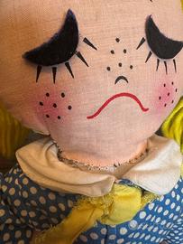 Rara bambola di pezza vintage double face, faccia felice e faccia triste.