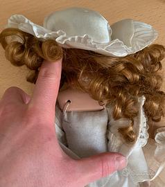 Bellissima bambola decorativa in porcellana (testa, mani e piedi), corpo in stoffa morbida.