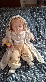 bambola di porcellana con corpo morbido di stoffa, abito originale l, cuffia ad uncinetto. Dimensione cm 44