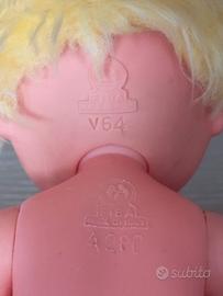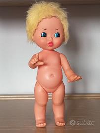 "FIBA" Bambola vintage, anni 70, materiale gomma (testa) e plastica rigida ( corpo, gambe e braccia), altezza 28 cm circa.