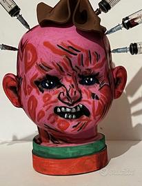 - Testa in resina dipinta a mano.