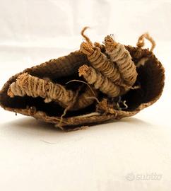 Realizzata in tessuto intrecciato, probabilmente imbottita con fibre vegetali o canne, questa tipologia di figure era destinata a un uso rituale e funerario. Le bambole Chancay venivano deposte nelle sepolture come corredo funerario, con funzione simbolica di accompagnamento del defunto nell’aldilà.