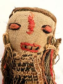 Bambola funeraria originale della cultura Chancay, importante manufatto tessile precolombiano proveniente dalla costa centrale del Perù e databile tra il 1000 e il 1470 d.C.