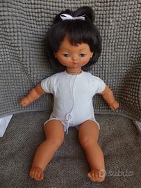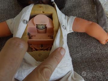 Bambola Furga Cicciobello anni '70 orientale vintage.Capelli saldi, corpo pulito, meccanismo non testato, venduto come non funzionante. Indossa abiti in lana (non so se originali, con alcuni rammendi, golfino chiuso sul retro con spilla da balia).