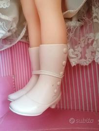 Bambola Furga della Collezione Mondo Antico. Non è mai stata giocata, è ancora attaccata con la fascetta al dorso della scatola. La scatola originale non è completa. La bambola è alta quasi 50 cm. Targhetta Furga cucita dentro l'abito della damina. Sempre custodita al riparo da luce diretta e polvere. Risale agli anni '70.