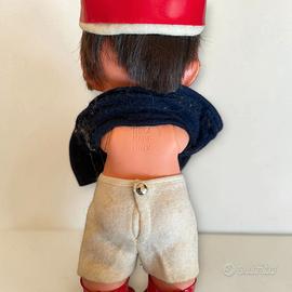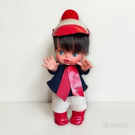 🧸 Graziosa bambolina d’epoca Furga Made in Italy, con occhi azzurri e capelli castani. Indossa un completo originale molto caratteristico: cappellino con pon pon rosso, casacca blu con colletto chiaro, pantaloncini e stivaletti rossi. 📦 Marchio Furga visibile sul retro 🎨 Abiti presenti e molto scenografici 🔧 Condizioni buone: segni del tempo su vestiti (leggero usura/pelucchi), ma completa e ben conservata 💡 Ideale per collezionisti o per chi cerca bambole vintage italiane particolari 💰 Prezzo trattabile 💬 Contattami per info