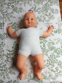 Bambola Gaia Furga, vintage anni '80, altezza 60 cm circa. Le foto fungono da descrizione. Condizioni ottime. Imbottitura interna nuova. Lavata e pulita. Segnalo residui della precedente imbottitura sul tessuto, sembrano macchie ma non lo sono (guarda le foto). Segnalo un piccolo segno di pennarello sul dito (guarda le foto). Un occhio è un pò addormentato. Vendo insieme a bambola Furga più piccola, in ottime condizioni, che forse si chiama Mister Bello.