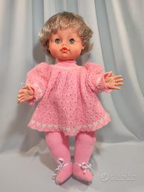 La Bambola è in ottime condizioni; colore del vinile roseo e stabile alla luce, capelli morbidi e lucidissimi, occhi richiudibili. Completo di un bellissimo coordinato in lana che credo sia stato riadattato.