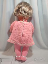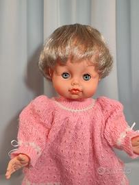 Bellissimo e grande bambolotto della GALLETTI GALBA CICOGNA anni 1960, alto cm. 50 circa, con logo Cicogna sulla schiena. Bambola con testa in vinile mentre busto ed arti in polietilene soffiato, capelli ben radicati, lavabili e pettinabili; occhi mobili azzurri. La Bambola è in ottime condizioni; colore del vinile roseo e stabile alla luce, capelli morbidi e lucidissimi, occhi richiudibili. Completo di un bellissimo coordinato in lana che credo sia stato riadattato. GUARDATE LE FOTO PER UNA MIGLIORE DESCRIZIONE.