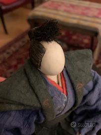 Bambola Giapponese vintage fatta a mano con Carta Di Abaca E Paglia Di Riso. Altezza 15, piedistallo 20x15 cm