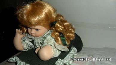 Il suo nome è "ELEANOR" e il suo codice è LP3117, ha i capelli biondi riccioluti raccolti in 2 code fermate da un nastro di raso verde, ha gli occhi azzurri e naso e bocca - rosa - in rilievo