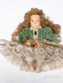 Bambola in porcellana vintage da collezione. Abito color verde e pizzo. Altezza cm.22. Perfettamente conservata.