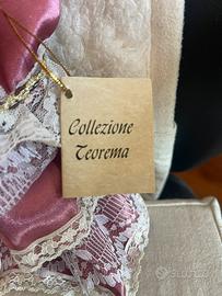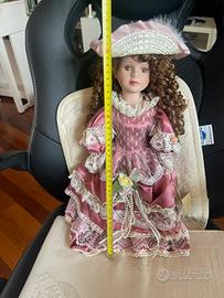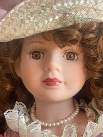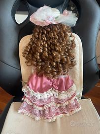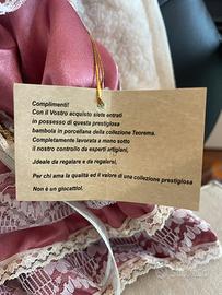 Splendida bambola da collezione "Teorema Collection", un pezzo d'arte di rara bellezza, conservata in condizioni impeccabili (pari al nuovo). Questa bambola non è un semplice giocattolo, ma un oggetto decorativo di alto artigianato, realizzato e rifinito interamente a mano. Ideale per collezionisti esigenti o per dare un tocco di eleganza vittoriana alla tua casa. Dettagli che la rendono unica: ✨ Stato di conservazione: Nuova. Porcellana (viso, mani e piedi) lucida e senza segni; boccoli ramati perfettamente definiti e vaporosi. 👗 Outfit Sontuoso: Indossa un sontuoso abito in stile vittoriano in raso rosa antico, arricchito da ampie balze in pizzo bianco e pregiata passamaneria dorata. 👒 Accessori Inclusi: Cappello coordinato con piume e fiori, bouquet floreale applicato all'abito e raffinata collana di perle. 📐 Dimensioni Importanti: Altezza circa 45 cm. L'abito ha un'apertura alla base di circa 27 cm, garantendo una presenza scenografica in vetrina. 🏠 Igiene: Proviene da ambiente privo di fumi e odori, conservata al riparo dalla polvere. Note per la spedizione: Garantisco un imballaggio ultra-sicuro con pluriball e scatola rigida rinforzata per assicurare che la porcellana arrivi integra a destinazione. 📦