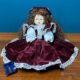 Elegante bambola di porcellana Capodimonte, con corpo snodato, realizzata dal laboratorio artistico “Creazioni Marco”.