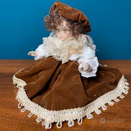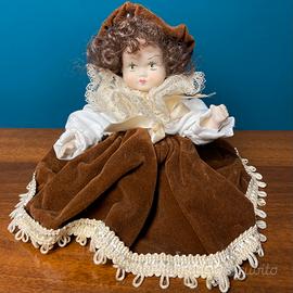 Elegante bambola di porcellana, con corpo articolato.
