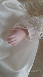 Bambola in porcellana con vestito da sposa. Altezza circa 40 cm.
