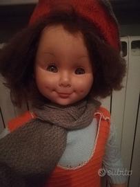 graziosa bambola migliorati cm 87,con marchio su collo e schiena.giocata con difetti.ha i talloni rotti,un occhio che rimane rigido aperto e che sforza a chiuderlo.capelli lavati,ma molto infeltriti e forse in alcuni punti tagliati.completino in lana aggiunto.